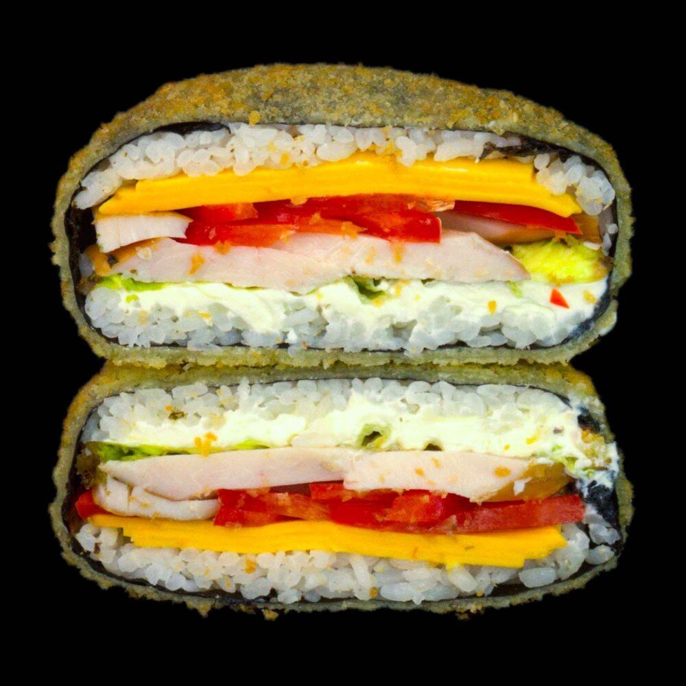 Soczysty, pieczony łosoś, kremowy serek, świeży ogórek, słodka dynia i aksamitne awokado w połączeniu z puszystym ryżem i nori tworzą wyjątkowy sushi burger. Delikatny ser tostowy dodaje aksamitnej konsystencji, a całość zachwyca smakiem i wyglądem.